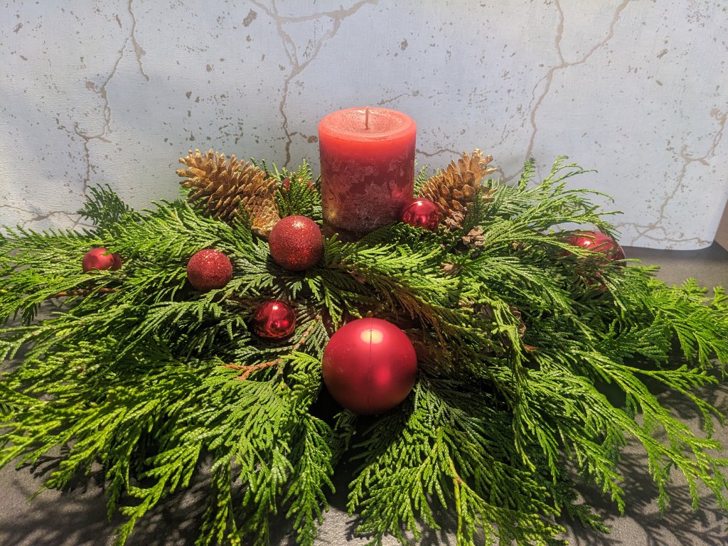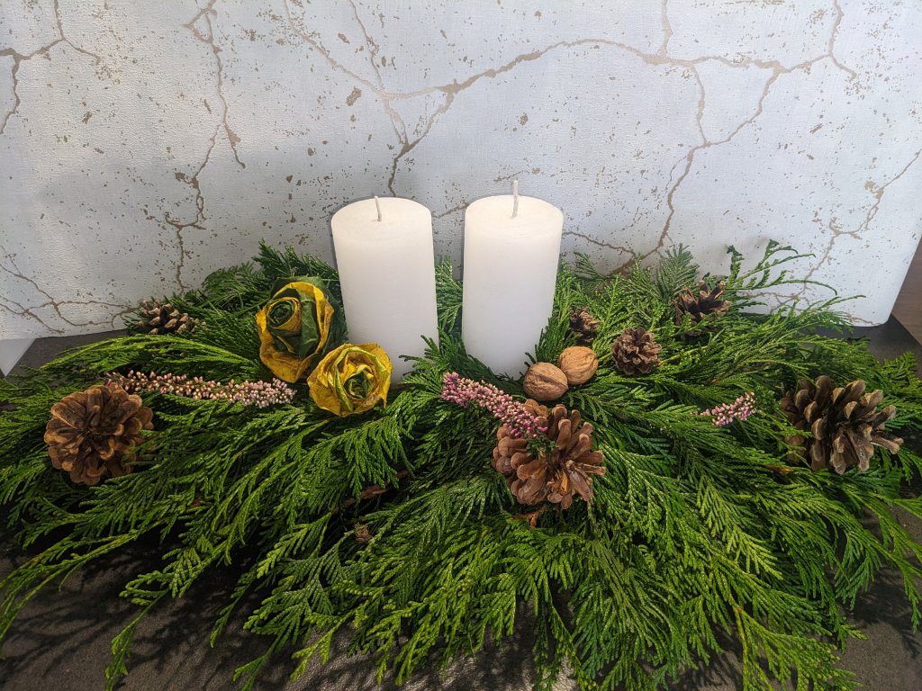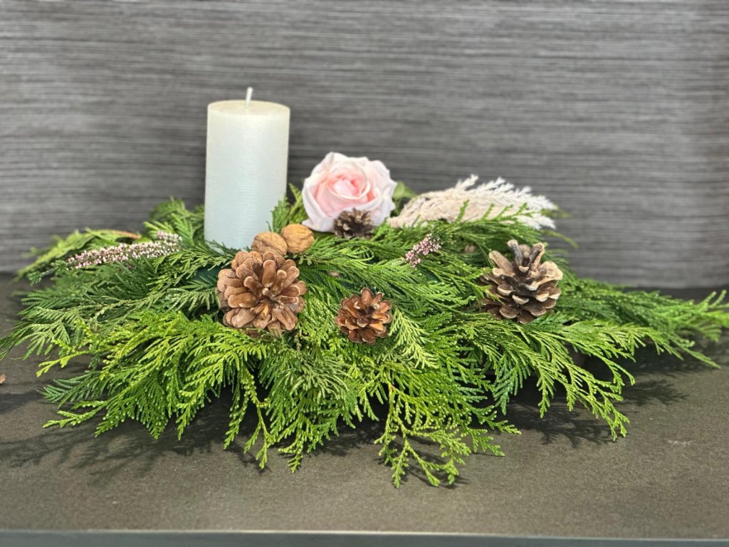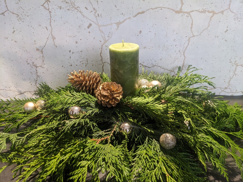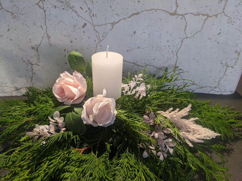 Výzdoba z chvojí a zapálení svíčky